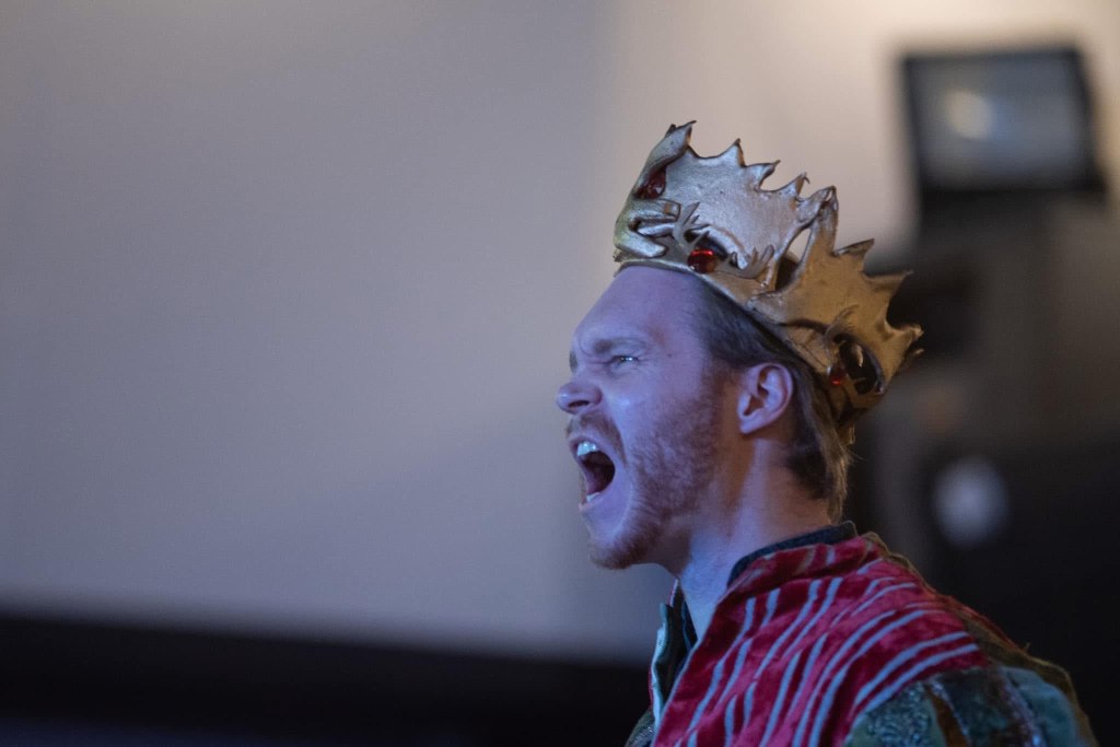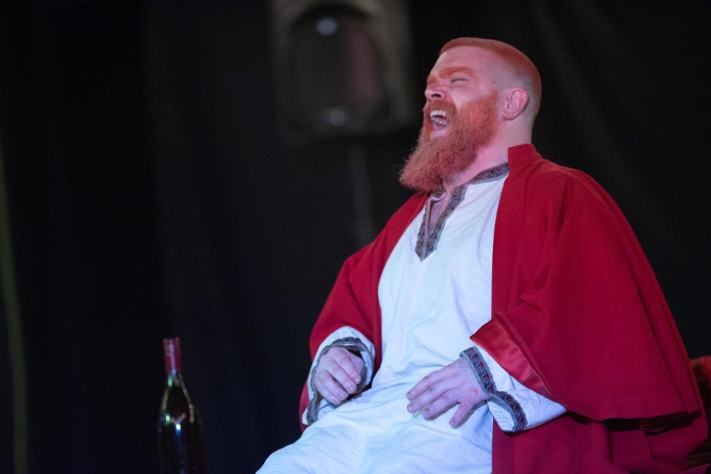 (Dan Wilson playing Henry VIII in Henry’s End at The Old Electric. Photo credit: Claire Griffiths.)